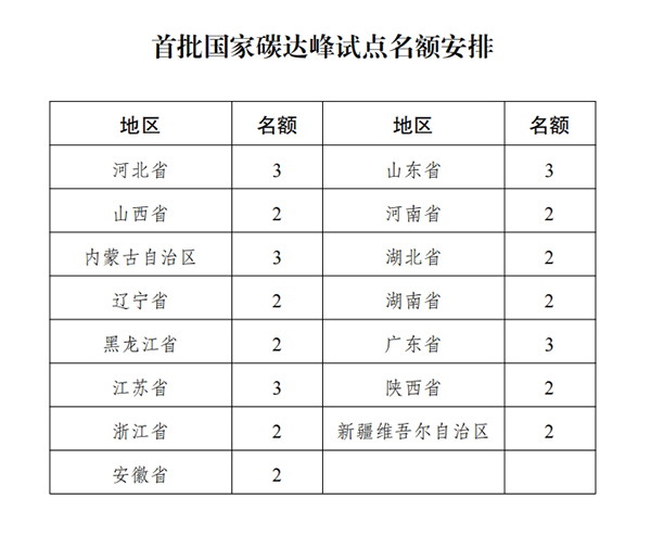 《方案》提出了堅持積極穩妥、堅持因地制宜、堅持改革創新、堅持安全降碳四項工作原則,確定了試點任務、實施重點工程、強化科技創新、完善政策機制、開展全民行動等五個方面部署試點建設內容。根據《方案》,首批國家碳達峰試點名額共有35個。國家發展改革委將根據首批試點推進情況,組織開展后續試點建設。