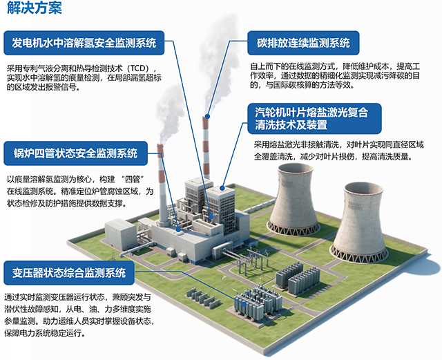 敢為科技開發的 “能源電力安全解決方案” 可覆蓋火電、核電、風電、光伏等各類能源場景,目前已實現規模化應用落地,顯著提升了電站設備的穩定運行水平。其中,公司自主研發的 “發電機水中溶解氫安全監測系統”,已在大唐集團江西撫州發電廠成功應用。“變壓器油中氣體監測預警系統”則 在國家能源集團、國家電投、華能集團、大唐集團及華電集團等央企旗下的火電項目;三峽新能源海上風電項目;三峽長江電力水電項目;大唐集團鈉離子儲能電站以及中廣核核電項目等多類型能源場景中落地運行,其產品的可靠性與技術優勢獲得客戶充分認可。