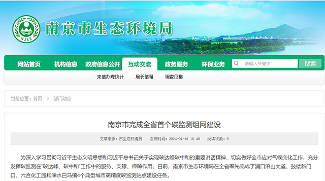 近日,南京市生態環境局官網、官微發布了關于《南京市完成全省首個碳監測組網建設》的最新進展。南京市生態環境局在全省率先完成了浦口沿山大道、鼓樓新門口、六合化工園和溧水白馬鎮4個典型城市高精度碳監測站點建設任務。