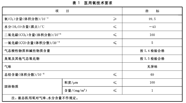 GB8982-2009《醫用及航空呼吸用氧》,《中國藥典》2020年版二部國家藥典委員會修改公布了“關于氧國家藥品標準草案"其中對醫用氧的純度及氧中痕量一氧化碳、二氧化碳、水分的含量及其檢測方法都做了具體規定。